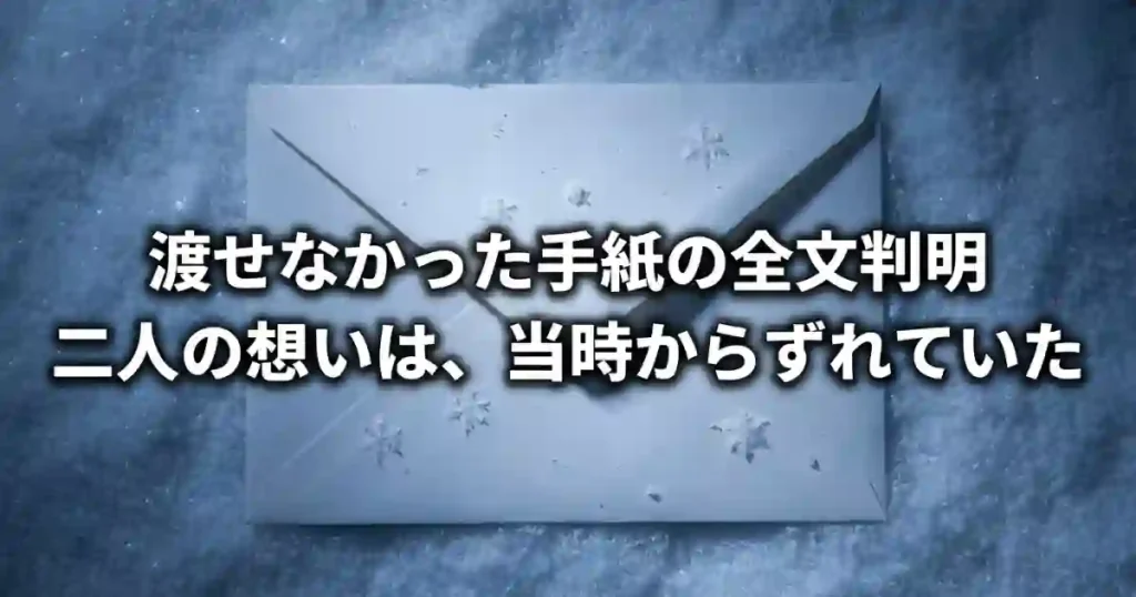 特に第1話で、雪の駅で互いに渡せなかったあの手紙の全文が明らかになる点は衝撃的です。