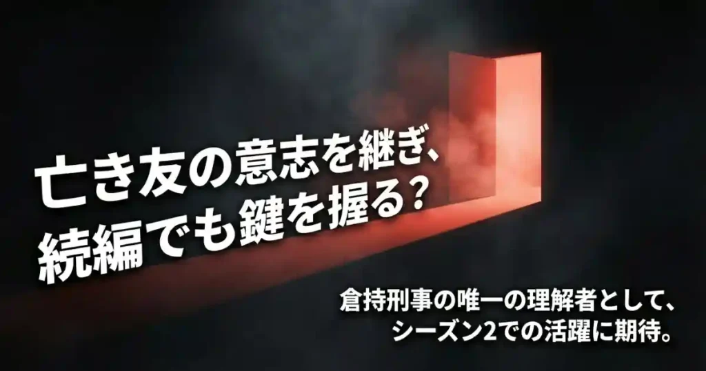 続編では、もしかすると彼が現場に出てきたり、より積極的に捜査に関与したりするシーンが見られるかもしれません。