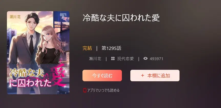 - 『冷酷な夫に囚われた愛』は読書アプリのTaponで読める可能性が高い